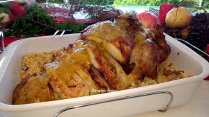 Depois das devidas apresentações , vamos então ao meu peru de Natal. Todo os anos costumo celebrar o Thanksgiving aqui em casa e , claro, não pode faltar o peru. Esse ano, meu Thanksgiving foi muito significativo, pois consegui reunir pessoas muito especiais ao meu lado. Uma delas, a Ana Maria, gostou tanto do Peru, que ontem, quando nos encontramos, ela perguntou: ” E o molho do Peru, você não vai colocar no Simples Assim?“