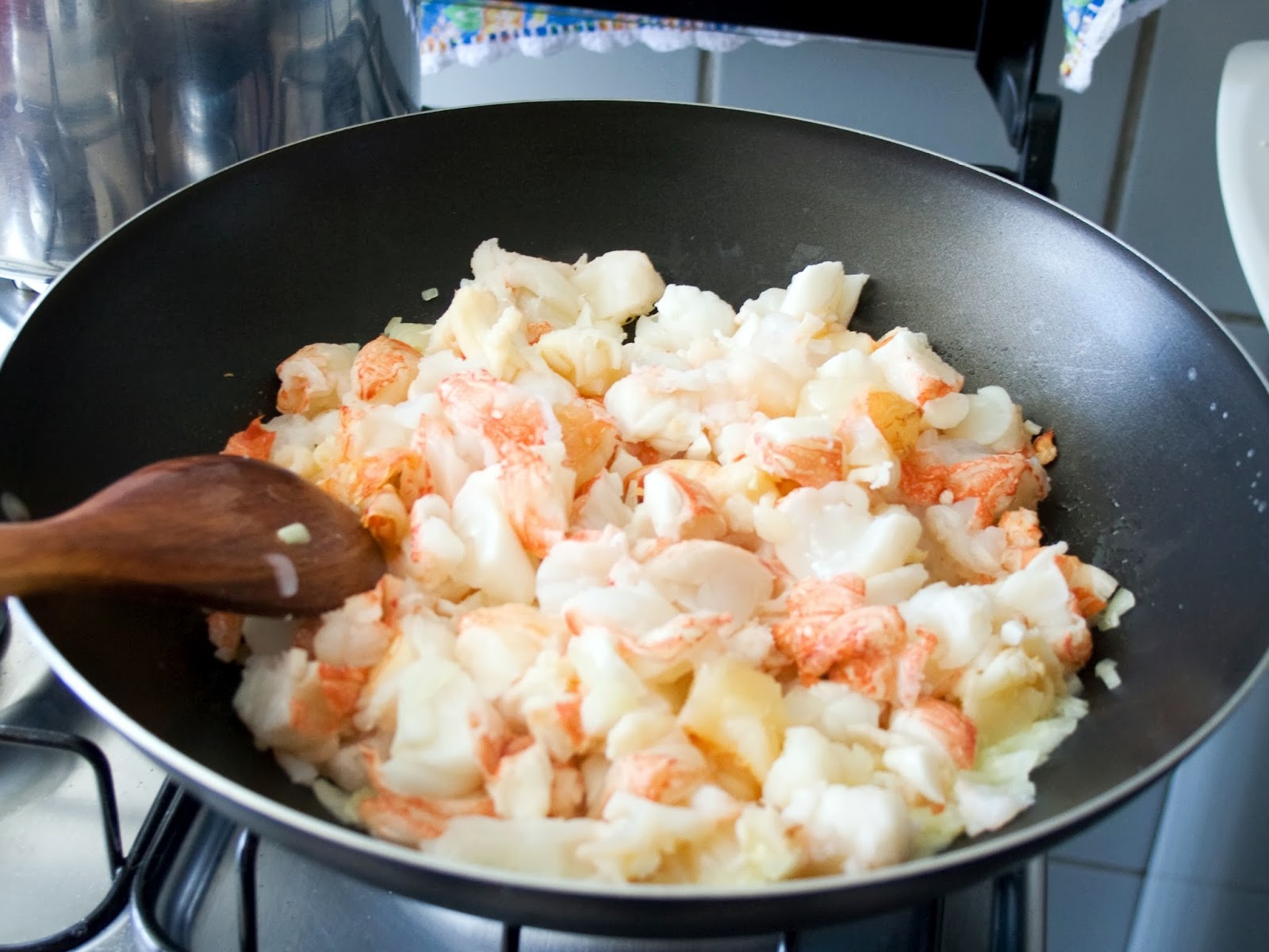 - Na mesma frigideira que refogou a lagosta, aqueça a manteiga e a farinha.