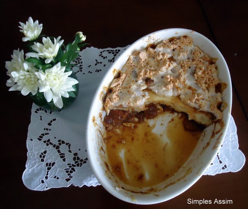 Essa receita é tão simples que nem precisava escrever. Um creme branco, com bananas carameladas cobertas com um merengue e levadas ao forno. Mas para você não ter desculpa de não fazê-la, vou explicar bem direitinho como vi no blog Mulheres a Vapor, onde a Paula dá o passo a passo. E é justamente essa simplicidade que a torna tão especial e tão saborosa. Ela me lembrou uma sobremesa que minha mãe fazia na minha infância que era mais ou menos assim e , como eu gostava…