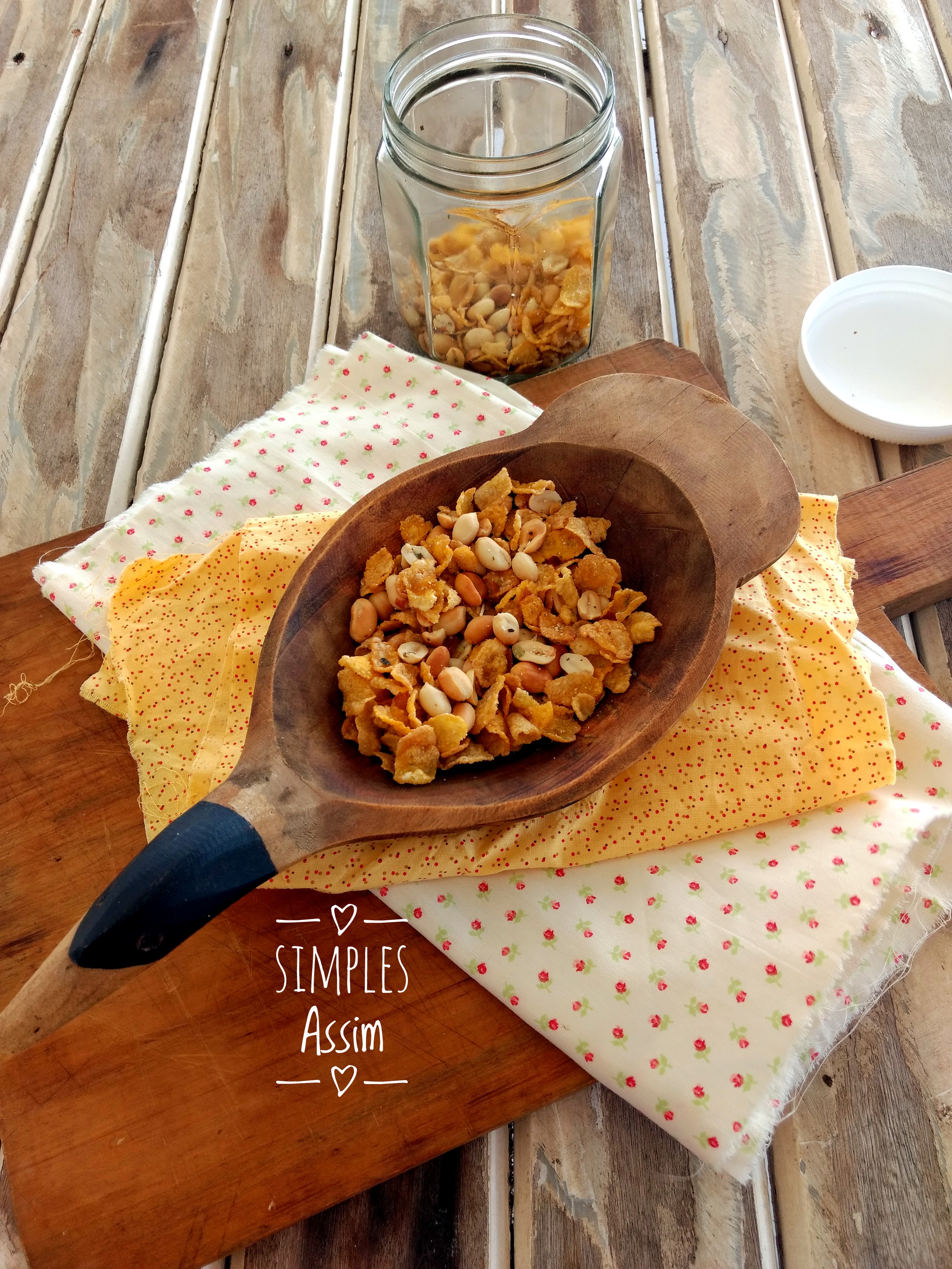 Esses Amendoins com flocos de milho crocantes, também conhecidos com Petiscos de cinema, são como pipoca: não dá para parar de comer.