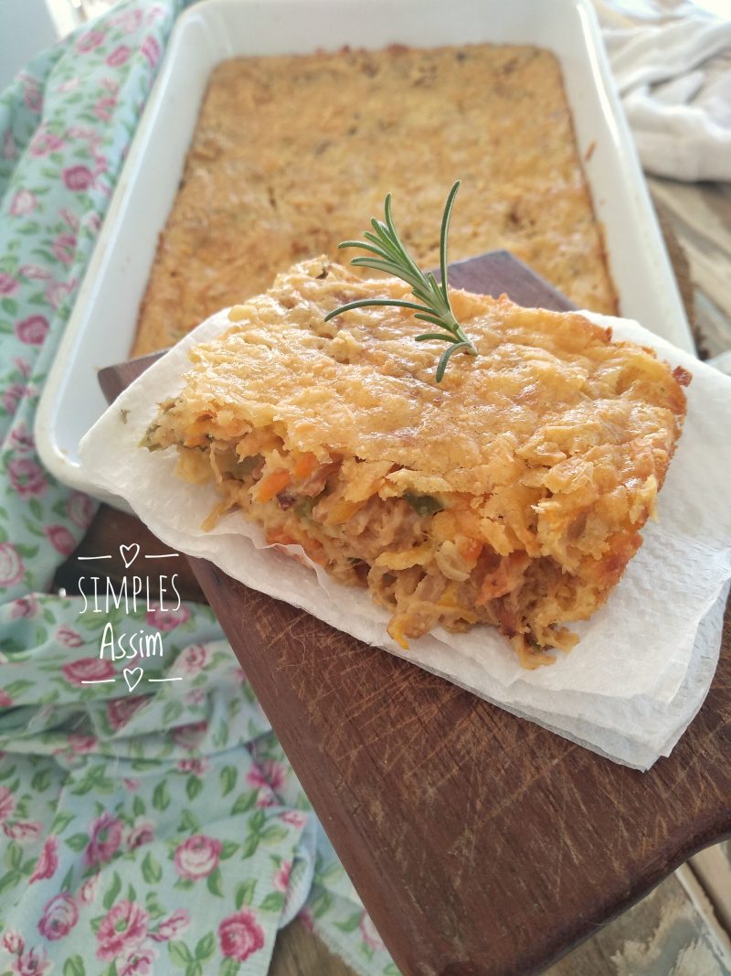 - Leve ao forno preaquecido a 190ºC por cerca de 40 minutos ou até que a torta esteja dourada e cozida por dentro.
