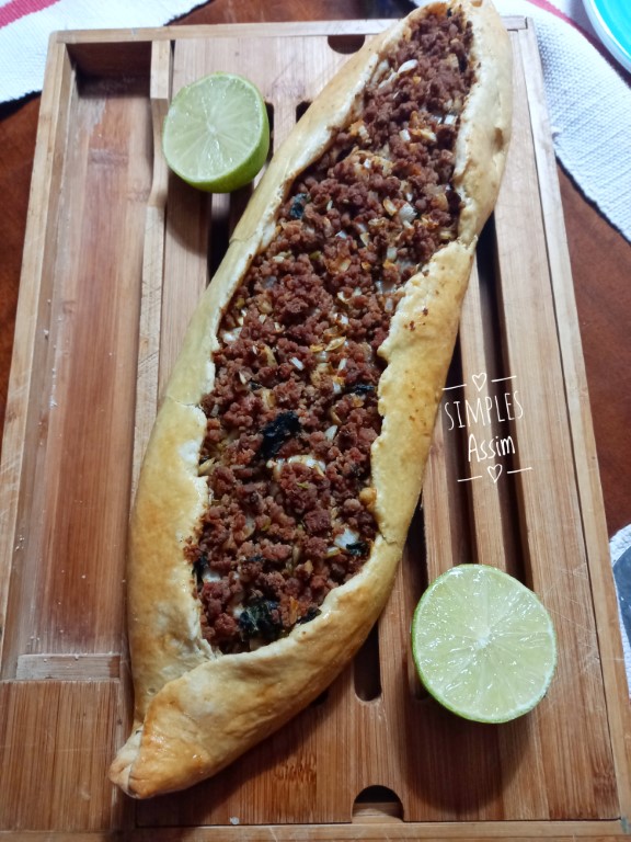 Para quem não conhece, Pide é um pão típico da culinária turca, pertence à família do pão-folha, mas é preparado com levedura e azeite, normalmente de forma oval, com dimensões aproximadas de 25 por 40 cm, e recheado com carne.